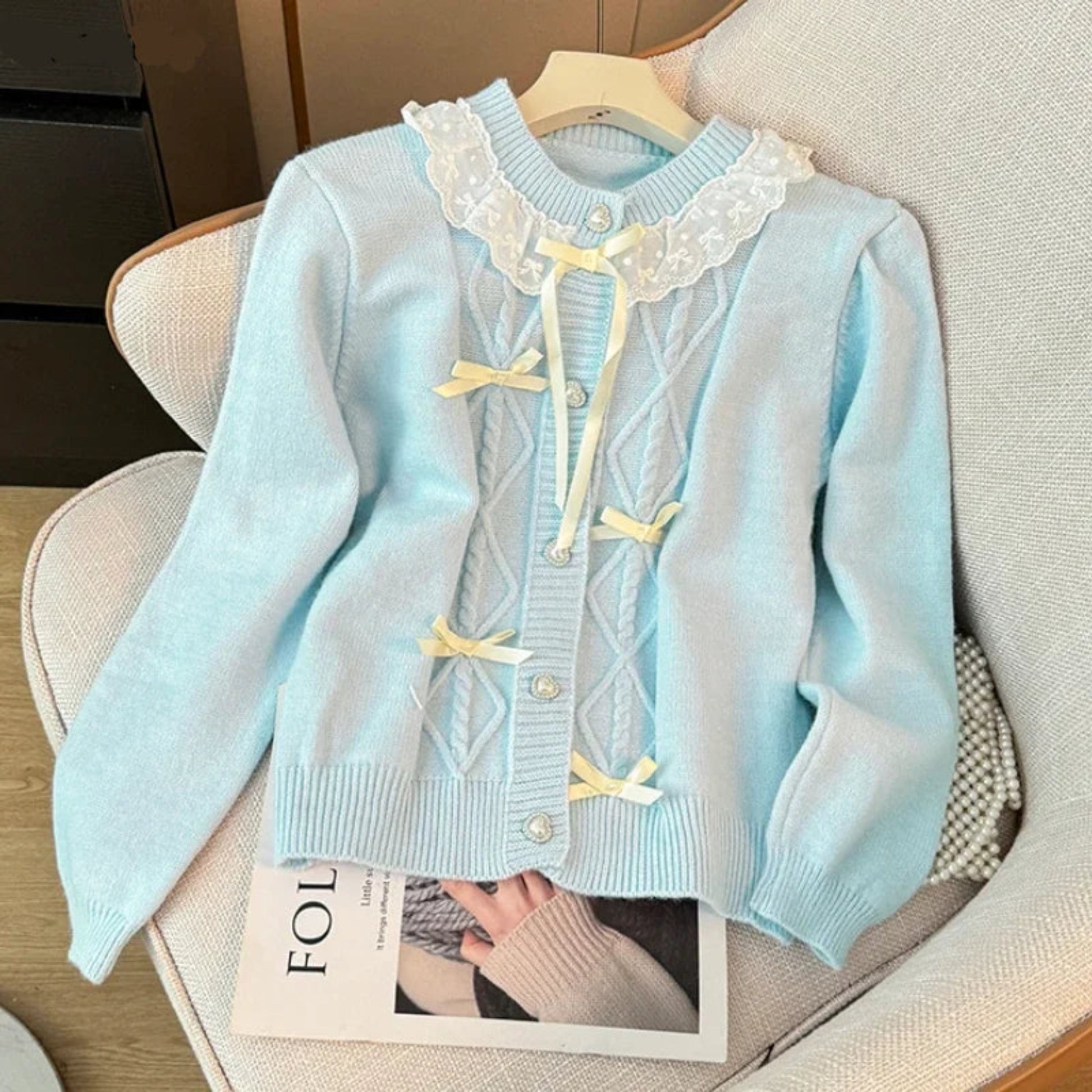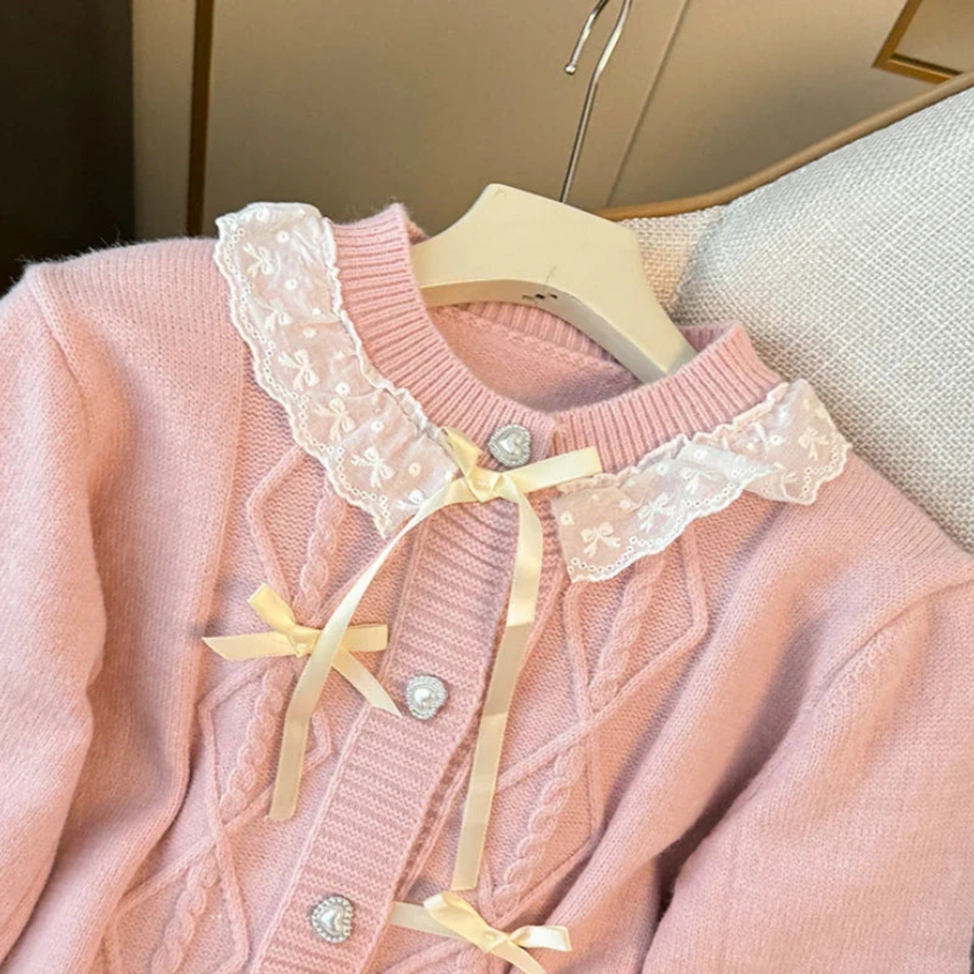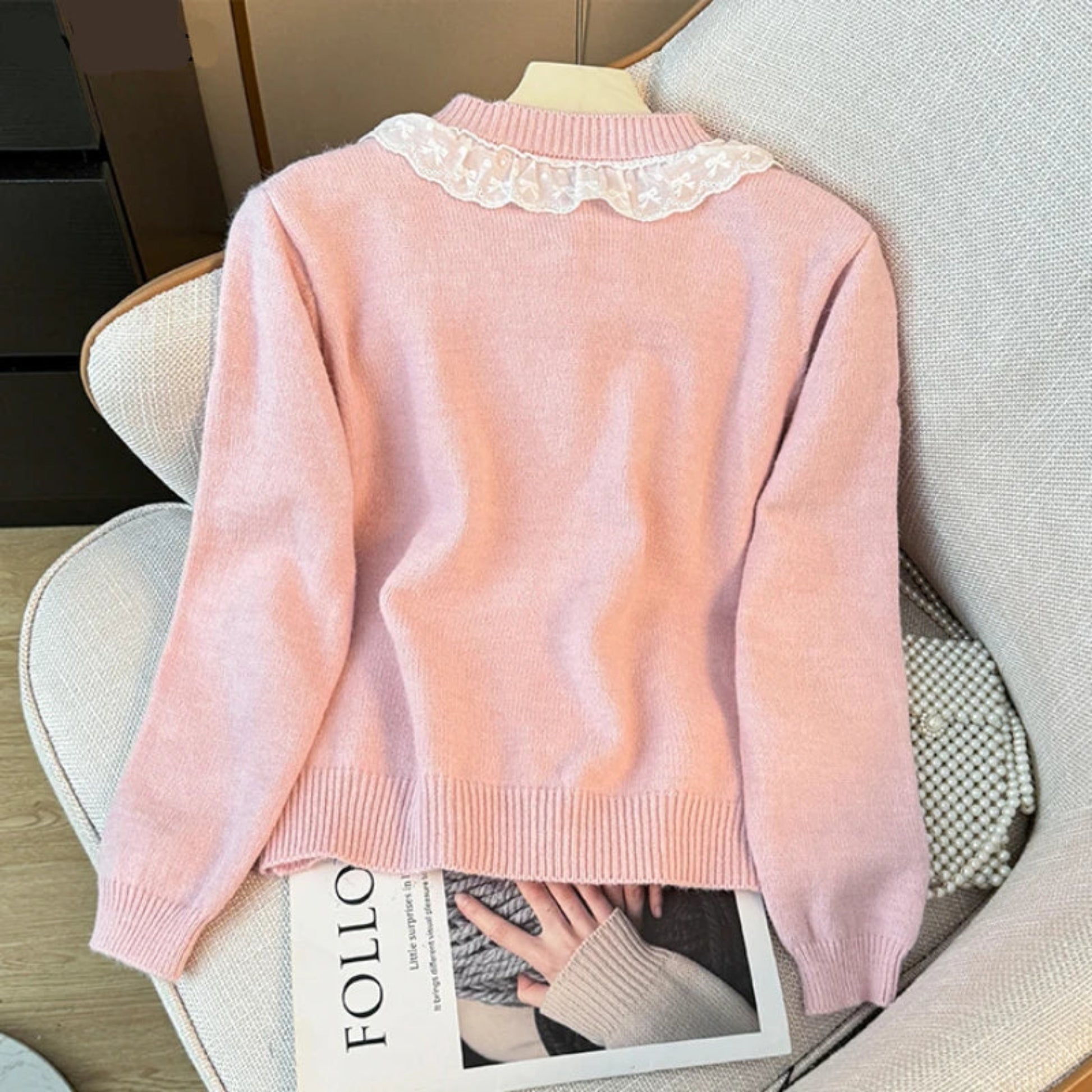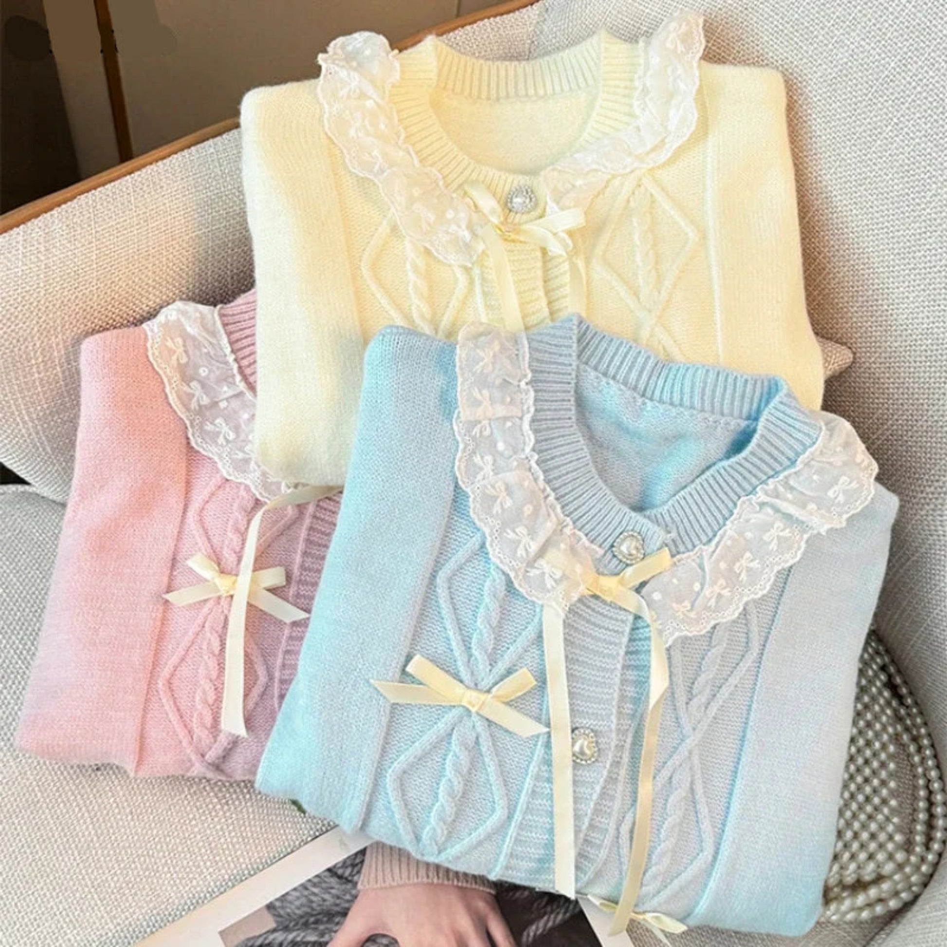 Add a touch of playful charm to your look with our Lace Collar Pastel Cardigans, the perfect balance of sweet and cozy. Available in soft shades of pink, blue, and yellow, each cardigan is designed with a delicate lace-trimmed collar and a classic button-down front—making it a must-have piece for your spring kawaii wardrobe.